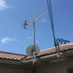 地デジ平面式アンテナの安定設置に成功した後、4K8K BS/CSアンテナも隣接して設置しました。配線処理を行い、4K8K対応ブースターで増幅した結果、地デジ・BS/CSともに全室で視聴良好となりました。