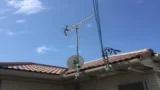 設置に際しては、強度を重視し、サイドベースを2個使用し、太めのマスト(アンテナ棒)を強固に固定しました。屋根上に突き出した八木アンテナの方角を専用測定器で正確に調整し、地デジブースターで電波レベルを安定させました。