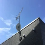 屋根の上で、アンテナの固定金具を緩め、風でズレていた八木アンテナをテレビ塔の正確な方角に向けました。専用の測定器で受信レベルと信号品質を確認しながら微調整を行い、最も安定して電波を受信できる位置で再び強固に固定しました。
